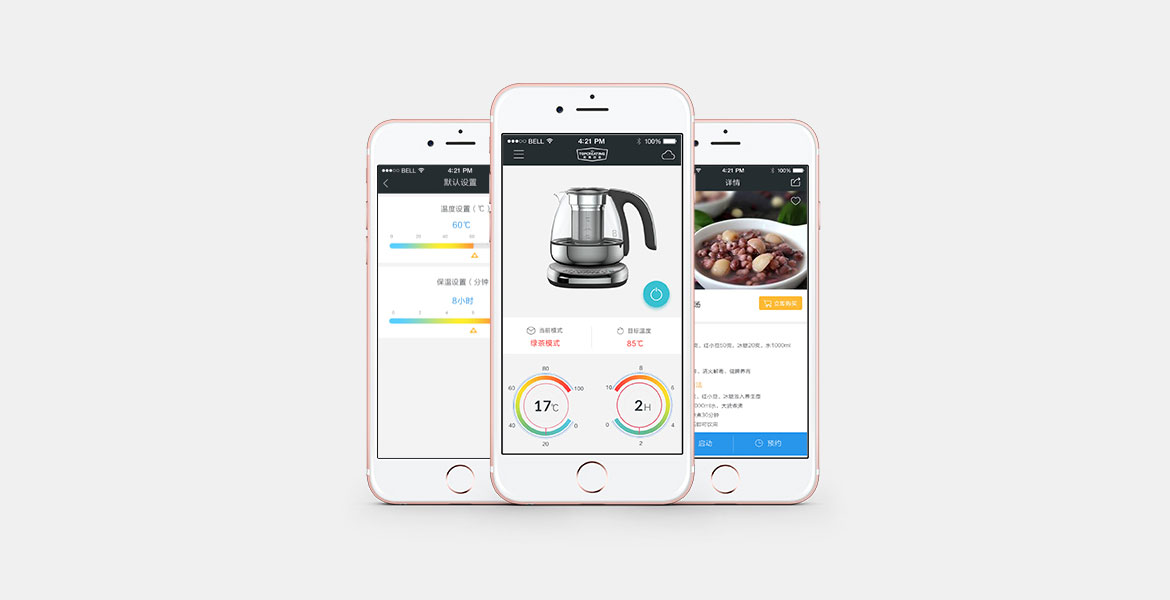 App:IOS、Android开发兼容市场智能手机;响应式Web:专业定制服务、兼容多个终端;智能产品:进口原材料制作、软件控制、内置养生配方、用户自定义等